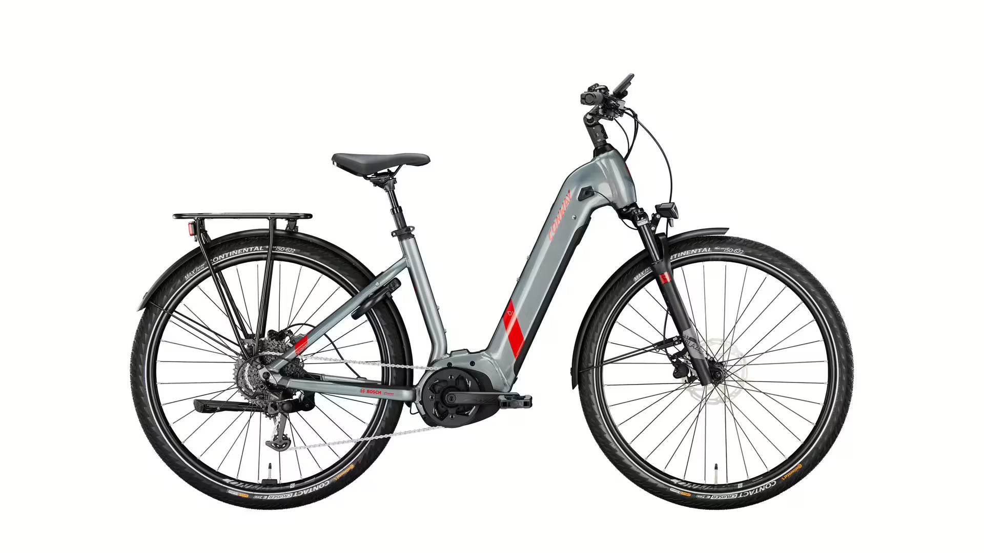 - 50 mm Continental Reifen + Federgabel + gefederte Sattelstütze