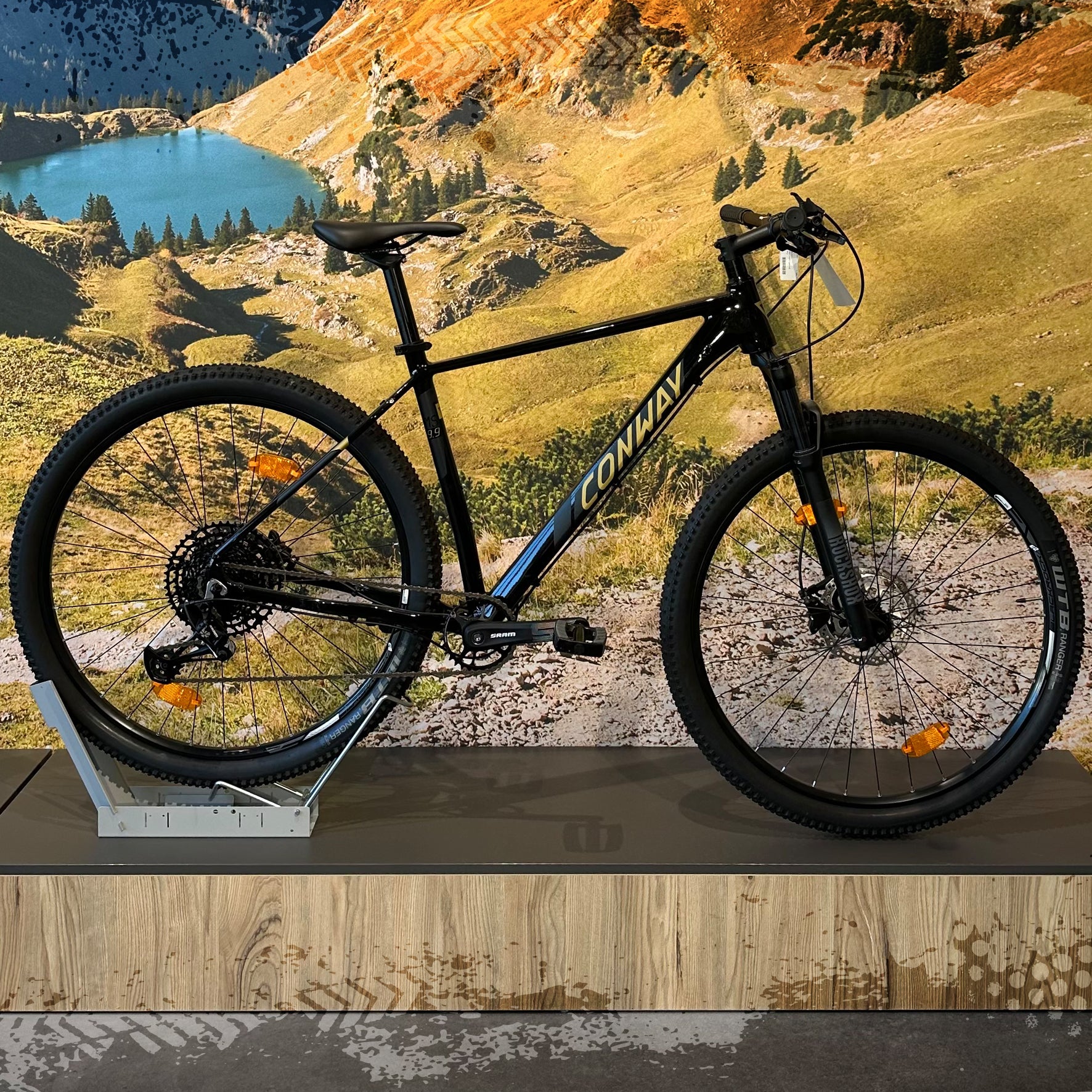 Das Conway MS 9.9 überzeugt als sportliches 29-Zoll-Hardtail mit modernem Design, zuverlässiger Technik und starkem Preis-Leistungs-Verhältnis. Der hochwertige Aluminiumrahmen in elegantem Schwarz bietet die ideale Basis für dynamische Touren, flotte Pendelstrecken und ausgedehnte Trail-Abenteuer.